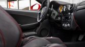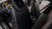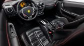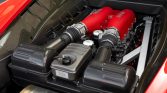 The Pininfarina-designed body is finished in Rosso Corsa and features xenon headlights, Scuderia Ferrari fender shields, side air intakes, and quad exhaust tips exiting on either side of the rear diffuser.
