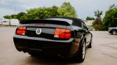 The interior is trimmed in black leather with matching carpets and door panel inserts. Equipment includes sport bucket seats with embossed Cobra logos and power adjustment for the driver along with SVT door sill plates, air conditioning, power windows and locks, and a Shaker 1000 audio system with satellite radio.