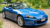 This 2007 Honda S2000 is finished in Laguna Blue Pearl over black leather, the car is powered by a 2.2-liter VTEC inline-four linked with a six-speed manual transmission and a limited-slip differential. Equipment includes 17″ ten-spoke wheels, a black convertible soft top, xenon headlights, air conditioning, a CD stereo, and cruise control.