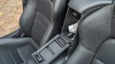 The cabin features seats upholstered in black leather with color-coordinated door panels and carpets. Amenities include push-button ignition, air conditioning, cruise control, a CD stereo, and a leather-wrapped aluminum shift knob.