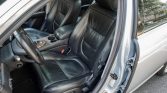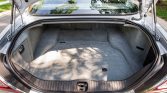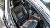 The interior is trimmed in black leather and features burled wood accents on the dashboard, center console, and door panels. Amenities include power-adjustable heated front seats, heated rear seats, dual-zone automatic climate control, navigation, and an Alpine sound system connected with a trunk-mounted CD changer. The headliner has been replaced under current ownership.