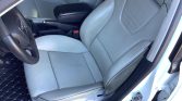 The cabin features heated power-adjustable front seats trimmed in silver leather along with matching door panel inserts and black carpets. Carbon-fiber trim accents the dashboard, center console, and doors, and additional equipment includes dual-zone automatic climate control, a hard-wired dashcam, side and rear sunshades, aftermarket floor mats, a JHM short shifter, a Black Forest Industries shift knob and suede shift boot, and a JVC head unit with a back-up camera along with a trunk-mounted Kenwood amplifier and subwoofer.