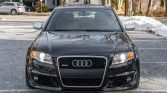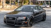 This 2008 Audi RS4 is finished in black over matching leather and is powered by a 4.2-liter V8 mated to a six-speed manual transaxle and a Quattro all-wheel drive system. Equipment includes a power glass sunroof, power-adjustable and heated Recaro front seats, heated rear seats, navigation, a Bose audio system, and 19″ wheels. Service under current ownership has included replacement of the clutch, flywheel, spark plugs, front brake pads and rotors, and tires.