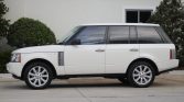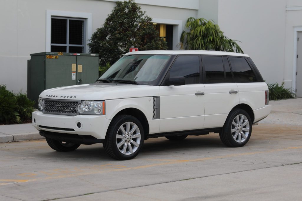 This 2008 Land Rover Range Rover is powered by a supercharged 4.2-liter V8 paired with a six-speed ZF automatic transmission and is finished in Chawton White over ivory leather. The car was first delivered to Land Rover North Dade of Miami, Florida, and was acquired by the seller in 2021. Amenities include an adjustable air suspension, front and rear parking sensors, a rear-view camera, a power glass sunroof, tri-zone automatic climate control, a navigation system with off-road tracking, a 14-speaker Harman Kardon audio system with a six-CD changer, Bluetooth connectivity, satellite radio, and a rear-seat entertainment system. The Supercharged trim added 20-inch alloy wheels, an electronically locking rear differential, adaptive headlights, upgraded leather upholstery, and ventilated 14-way power front seats.
