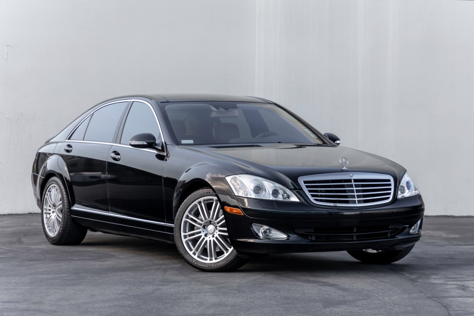 This 2008 Mercedes-Benz S550 is finished in black over Designo Sand leather and is powered by a 5.5-liter V8 paired with a seven-speed automatic transmission. Equipment includes heated, ventilated, and power-adjustable front and rear seats as well as four-zone automatic climate control, a panoramic sunroof, powered sun shades, Distronic cruise control, Keyless-GO, 19″ wheels, a Designo Alcantara headliner and maple wood trim, and COMAND with navigation, a rear-view camera, and Night View Assist.