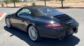 This 2008 Porsche 911 Carrera S is a black-over-black cabriolet powered by a 3.8-liter flat-six paired with a five-speed Tiptronic S automatic transaxle. Equipment includes a black soft top, 19″ Sport Design wheels, a deployable rear spoiler, heated power-adjustable front seats, a Bose sound system, self-dimming mirrors, automatic climate control, and cruise control.