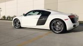 Five-spoke 19″ alloy wheels wear Pirelli P Zero tires measuring 235/35 up front and 305/30 out back. Braking is provided by black R8-branded calipers and cross-drilled rotors at each corner. The front struts were replaced in September 2021.