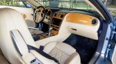 This 2009 Bentley Continental GTC is optioned with the Mulliner Driving Specification. Power is supplied by a twin-turbocharged 6.0-liter W12 linked with a six-speed automatic transaxle, an all-wheel-drive system, and a Torsen center differential. Additional features include 20″ seven-spoke alloy wheels, an adaptive air suspension, a power-retractable blue soft top, xenon headlights, parking sensors, a backup camera, heated front seats, navigation, a 12-speaker audio system, multi-zone automatic climate control, and cruise control.