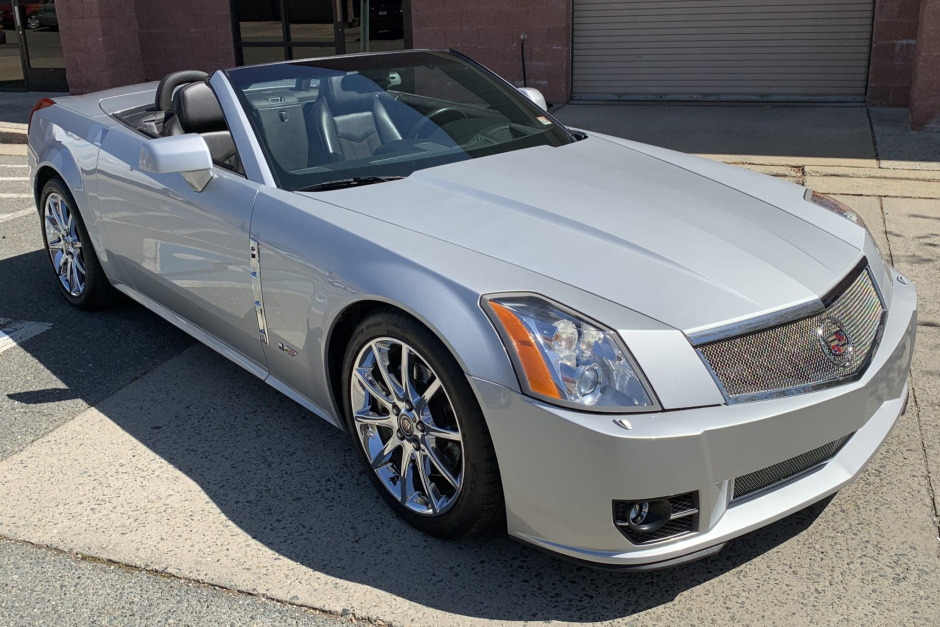 This 2009 Cadillac XLR-V was originally delivered to Sewell Cadillac of Dallas, Texas, and is one of 239 examples made during the final year of production. The car is finished in Radiant Silver over an Ebony leather interior and is powered by a supercharged 4.4-liter Northstar V8 paired with a six-speed automatic transmission. Equipment includes a power-retractable hardtop, quad exhaust outlets, 19″ chrome-finished wheels, a performance-tuned suspension with Magnetic Ride Control, black olive ash wood trim, Bose speakers, a DVD navigation system, dual-zone climate control, keyless entry, heated and cooled seats, and a head-up display.