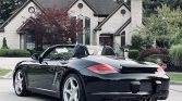 This 2009 Porsche Boxter S is powered by a 3.4-liter flat-six paired with a six-speed manual transaxle, and it is finished in black over black leather. Equipment includes a black soft top, 19″ Carrera Classic wheels, bi-xenon headlights, automatic climate control, a Bose Surround Sound System, a Bluetooth interface for mobile phones, self-dimming mirrors, an exterior rain sensor, and heated seats.