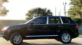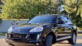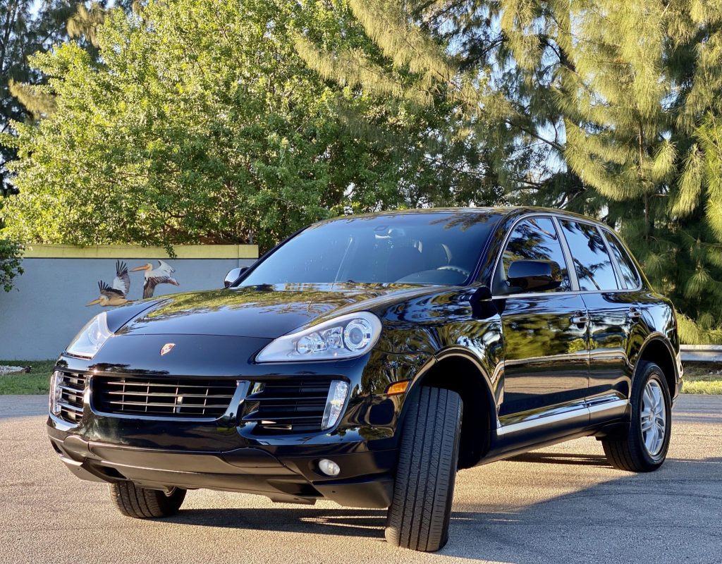 This 2009 Porsche Cayenne is finished in black over black leather and is powered by a 3.6-liter V6 mated to a six-speed manual transmission and all-wheel-drive. Features include bi-xenon headlights, a sunroof, a receiver hitch, a heated steering wheel, heated power-adjustable front seats, dual-zone automatic climate control, and an aftermarket Sony stereo.
