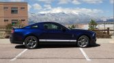 This 2010 Ford Shelby GT500 is finished in Kona Blue Metallic with white racing stripes and graphics, and it is powered by a supercharged 5.4-liter V8 paired with a six-speed manual transmission and a limited-slip differential. Equipment includes a front splitter, a rear spoiler and diffuser, 19″ alloy wheels, a power-adjustable driver seat, dual-zone automatic climate control, cruise control, and a Sync infotainment system with a CD player and Shaker audio. The car was first registered in Michigan, and it spent time in Ontario, Canada, prior to its acquisition in November 2018 by the seller, who relocated it to Colorado.