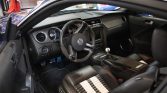 This 2010 Ford Shelby GT500 is finished in Kona Blue Metallic with white racing stripes and graphics, and it is powered by a supercharged 5.4-liter V8 paired with a six-speed manual transmission and a limited-slip differential. Equipment includes a front splitter, a rear spoiler and diffuser, 19″ alloy wheels, a power-adjustable driver seat, dual-zone automatic climate control, cruise control, and a Sync infotainment system with a CD player and Shaker audio. The car was first registered in…