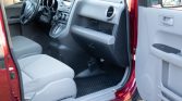 The cabin features seats upholstered in gray cloth with patterned inserts along with matching door panels and a two-tone dashboard. The interior of the Element features textured hard-plastic floors as well as side-folding and removable rear seats, and additional equipment includes air conditioning, cruise control, and power accessories.