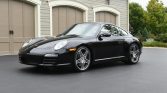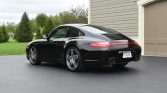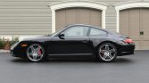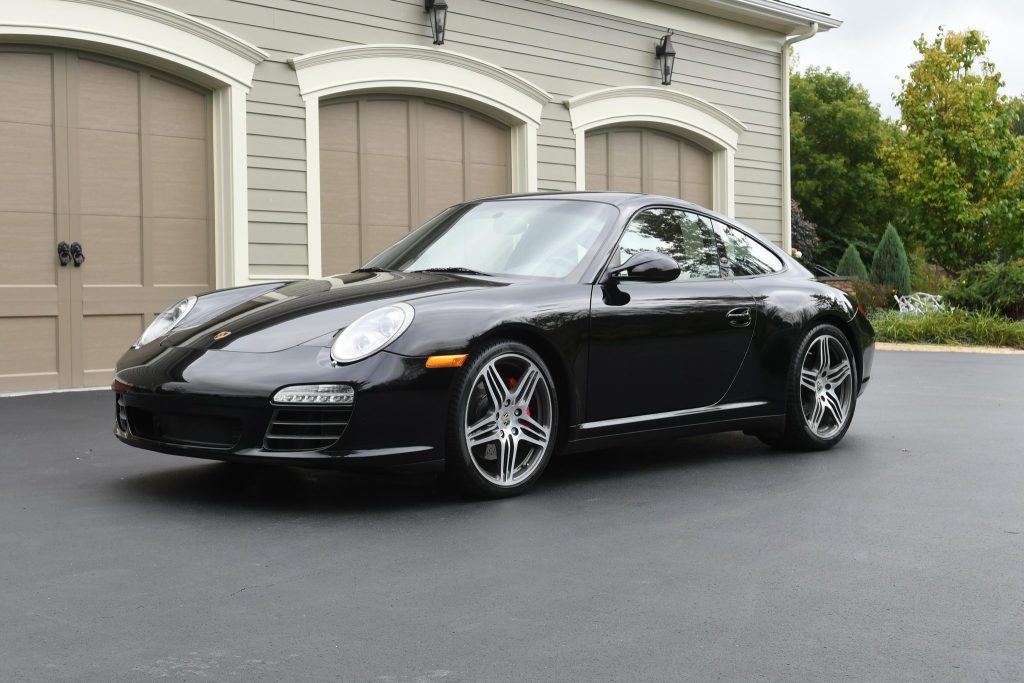 This 2010 Porsche 911 Carrera 4S coupe is powered by a 3.8-liter flat-six paired with a six-speed manual transaxle, and it is finished in black over matching leather. Equipment includes Porsche Active Suspension Management, dynamic cornering headlights, a power-operated sunroof, automatic climate control, the Bose High-End Sound package, 19″ Turbo wheels, heated front seats, and Porsche Communication Management with navigation, Bluetooth connectivity, and satellite radio.