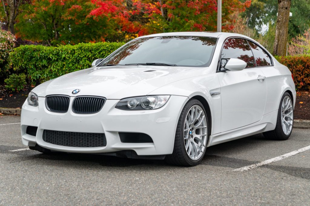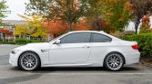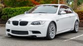 This 2011 BMW M3 coupe is finished in Alpine White over black leather upholstery and is powered by a 4.0-liter V8 mated to a seven-speed dual-clutch transmission and a limited-slip differential. Equipment includes the Competition Package, adaptive xenon headlights, a sunroof, heated and power-adjustable front seats, automatic climate control, carbon-fiber interior trim, parking sensors, 19” alloy wheels, and a factory CD stereo.