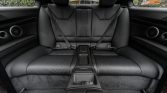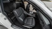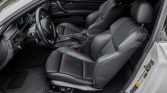 The cabin features seating surfaces upholstered in black Novillo leather along with carbon-fiber trim on the dashboard and door panels. Amenities include heated and power-adjustable front sport seats, cruise control, dual-zone automatic climate control, central locking, and a factory CD stereo.