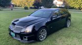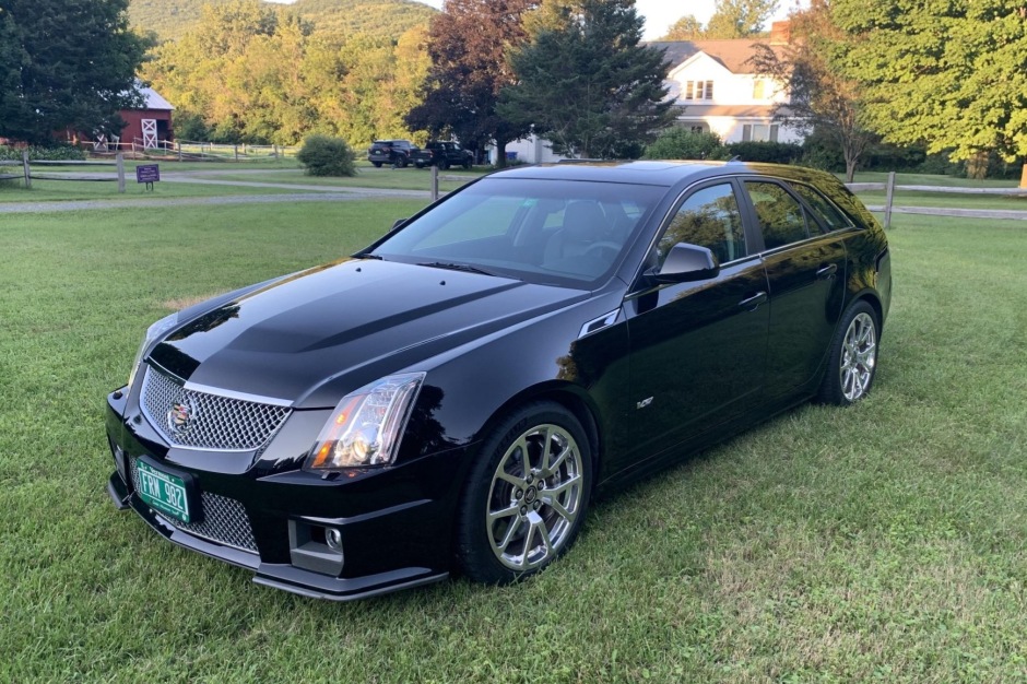 This Cadillac CTS-V wagon is finished in black over black leather and is powered by a supercharged 6.2-liter V8 mated to a six-speed manual transmission and a limited-slip differential. Equipment includes a panoramic sunroof, power-adjustable and climatized Recaro front seats with microsuede inserts, Midnight Sapele wood trim, a Bose sound system, navigation, A power-activated rear liftgate, dual-zone automatic climate control, parking sensors, and 19″ wheels. The car was first sold as a corporate fleet vehicle in Michigan and later relocated to Vermont where it was acquired by the seller in 2012.