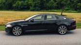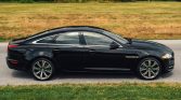 This 2011 Jaguar XJ Supercharged is finished in Ebony over Jet leather and is powered by a supercharged 5.0-liter V8 linked with a six-speed automatic transmission. Equipment includes a panoramic sunroof, xenon headlights, parking sensors, a rearview camera, 20″ Orona alloy wheels, heated and ventilated seats, and a Bowers & Wilkins sound system.
