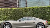This 2012 Fisker Karma EcoSport was purchased new by the seller from Fisker of Santa Monica, California, and has remained registered in the state. The car is finished in Shadow over a Black Sand Mono interior and is powered by dual rear-mounted electric motors fueled by a 20.1-kilowatt-hour lithium-ion battery pack and a range-extending turbocharged 2.0-liter Ecotec inline-four. Equipment includes a limited-slip differential, 22” wheels, a solar roof panel, bi-xenon headlights, heated front and rear seats, and…