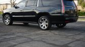 This 2015 Cadillac Escalade ESV Premium has 70k miles on board. It is powered by a 6.2-liter V8 linked with an eight-speed automatic transmission, a four-wheel-drive system, and a locking rear differential. The truck is finished in Black Raven over Shale Brown Mulan leather and features 22″ seven-spoke alloy wheels, Magnetic Ride Control, a sunroof, LED lighting, parking sensors, power-retractable running boards, heated and cooled power-adjustable front seats, heated second-row seating, a Bose sound system, a head-up display, a rear-seat entertainment system, adaptive cruise control, and CUE infotainment with navigation.
