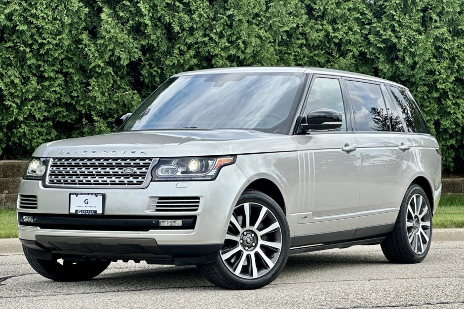 This 2015 Land Rover Range Rover Autobiography LWB is finished in Aruba Premium Metallic over Pimento and Ebony leather, it is powered by a supercharged 5.0-liter V8 linked with an eight-speed automatic transmission, a two-speed transfer case, and a locking rear differential. Equipment includes heated and ventilated seats, Executive Class rear seating, a rear-seat entertainment system, a Meridian 3D Surround-Sound system, adaptive cruise control, surround-view cameras, and soft-close doors. The truck also has 21″ wheels, a panoramic roof, power running boards, four-zone automatic climate control, and an 8″ touchscreen with navigation.