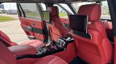 The four-passenger cabin houses heated, ventilated, and massaging front seats trimmed in Pimento leather complemented by Ebony upholstery on the upper dash. The second row features heated, ventilated, and power-reclining Executive Class seats in addition to an entertainment system with 10.2″ screens. Gloss-black trim accents the interior, and additional appointments include an 8″ touchscreen with navigation as well as a 29-speaker Meridian 3D Surround-Sound system, four-zone automatic climate control, adaptive cruise control, surround-view cameras, soft-close doors, and coolers in the front and rear consoles.