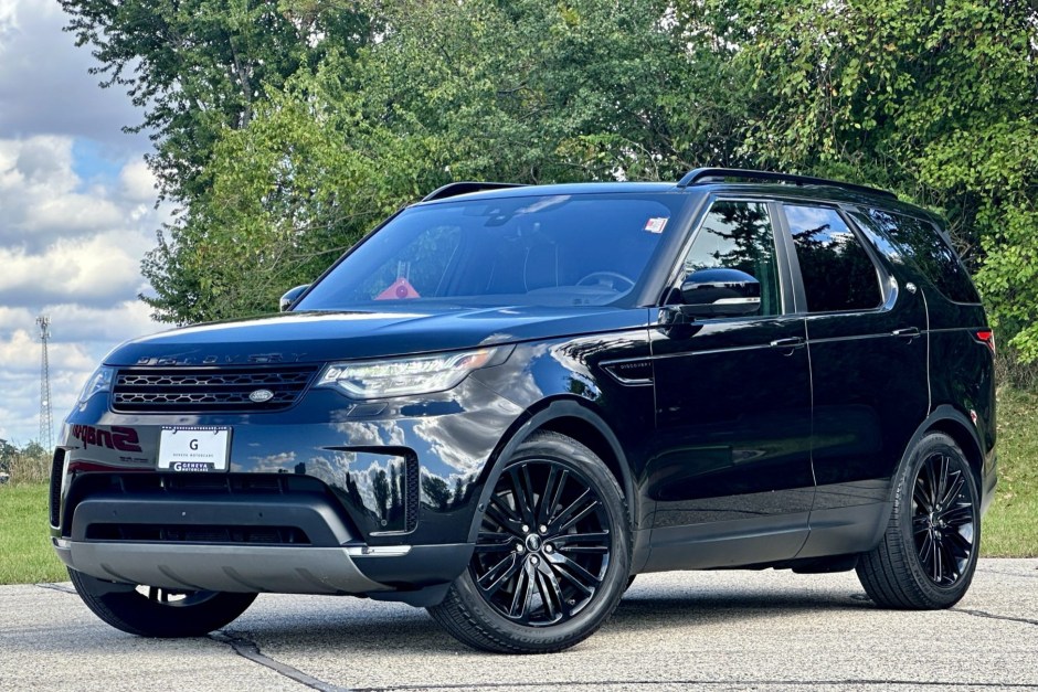This 2017 Land Rover Discovery HSE Td6 is powered by a replacement 3.0-liter turbodiesel V6 mated to an eight-speed automatic transmission and a dual-range transfer case, the truck is finished in Santorini Black over color-coordinated leather upholstery. Equipment includes 21″ Style 1012 wheels, electronic air suspension, a power front sunroof, a fixed rear sunroof, automatic LED headlights, heated front and rear seats, a heated steering wheel, three-zone automatic climate control, surround-view cameras, a Meridian sound system, and a touchscreen infotainment system with navigation.