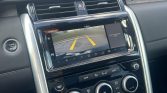 The heated front and rear seats are trimmed in Ebony leather with contrasting piping and perforated inserts. Oak veneer trim accents the interior, and additional appointments include keyless entry, push-button start, cruise control, ambient lighting, folding third-row seating, multi-zone automatic climate control, a surround-view camera system, a Meridian sound system, and touchscreen infotainment with a 10″ display and navigation.