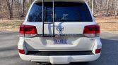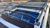 The truck is finished in Blizzard Pearl (070) and has been fitted with a Gobi roof rack and rear ladder. Additional features include a glass sunroof, a body-color rear spoiler, a receiver hitch, LED lighting, headlight washers, fog lights, heated side mirrors, parking sensors, mud flaps, and front and rear tow hooks.
