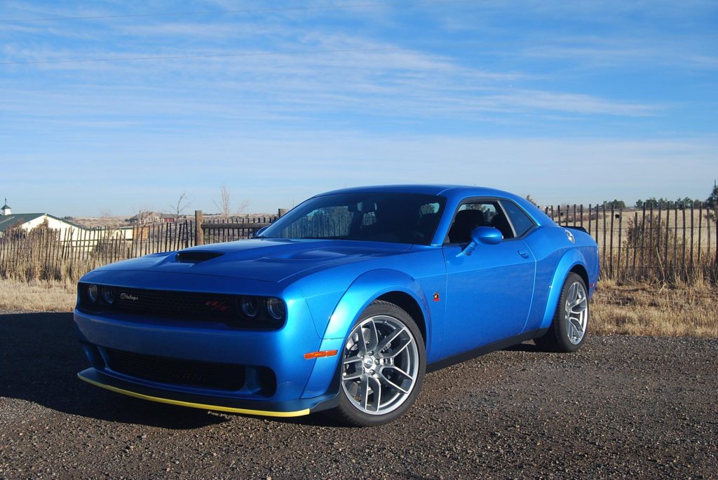 Silver 20″ Devil’s Rim forged alloy wheels wear 305/35 Pirelli tires at each corner. The Scat Pack Widebody package included a Widebody Competition suspension with adaptive shocks and four-wheel disc brakes with Brembo six-piston front calipers.