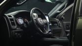 The heated and leather-wrapped multifunction steering wheel frames an AEV-branded 120-mph speedometer, a tachometer, supplementary gauges, and a configurable LCD screen.